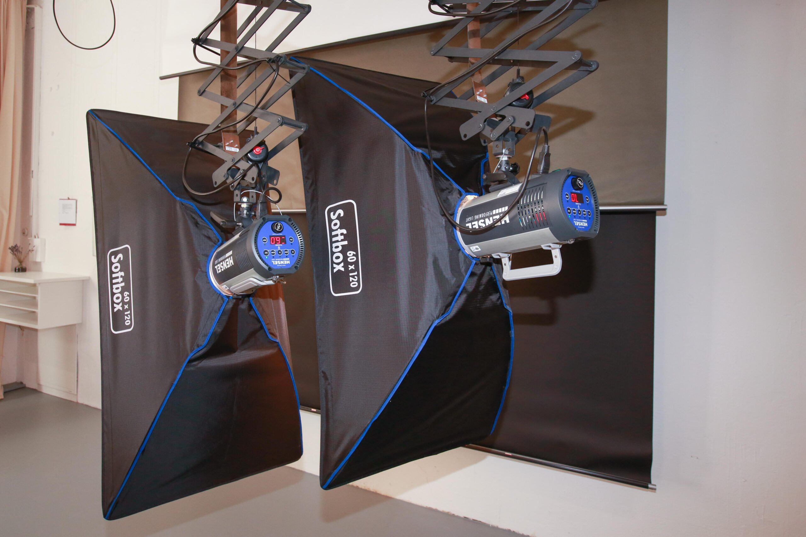 ** Das Studio 2 ist in zwei Bereiche teilbar (Studio A/B) und von zwei Fotografen nutzbar. Es gelten dann die gleichen Preise wie bei Studio 1 (außer bei der Hintergrundnutzung).