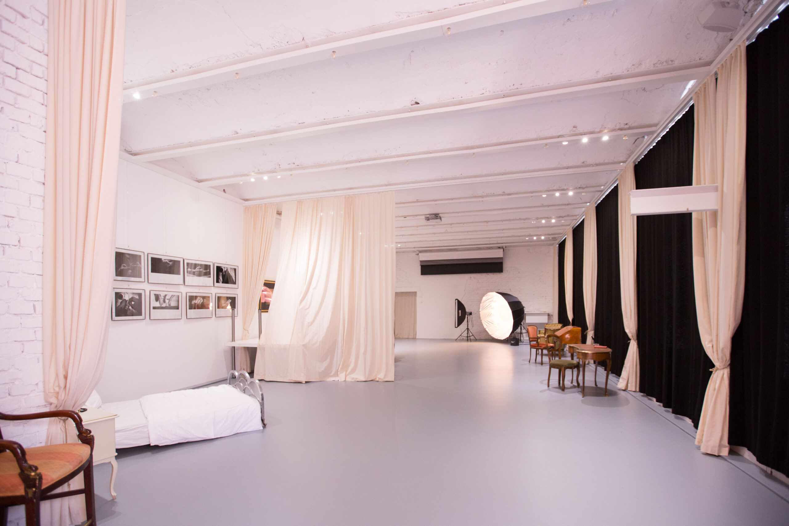 Das Studio 2 ist durch einen Vorhang in zwei Bereiche teilbar (Studio A/B) und von zwei Fotografen nutzbar.