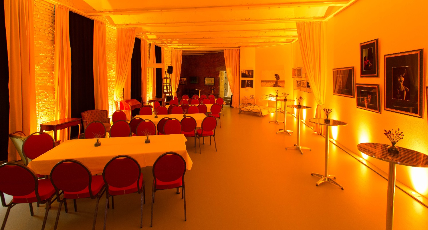 Die Räumlichkeiten werden nur gesamt für Veranstaltungen vermietet. Die Raummiete ganztags, d.h. von 10 – 10 Uhr (24 Stunden).